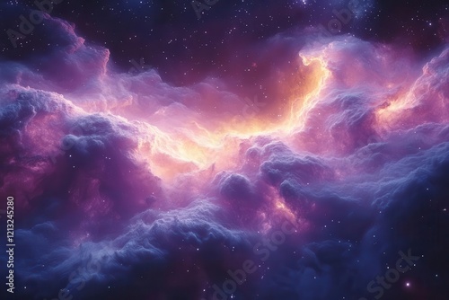 © Vesna, Obraz premium nebula birth in deep space swirling cosmic dust illuminated by newborn stars iridescent colors blend in infinite darkness