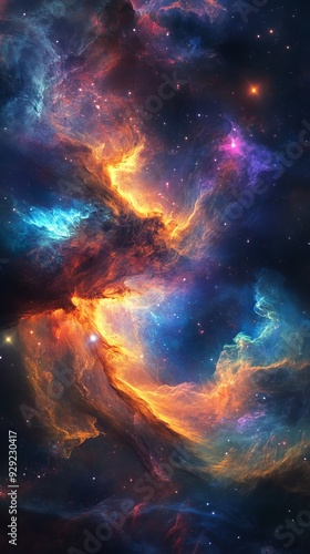 Fototapeta premium Nebula cloud emitting colorful space dust and glowing particles