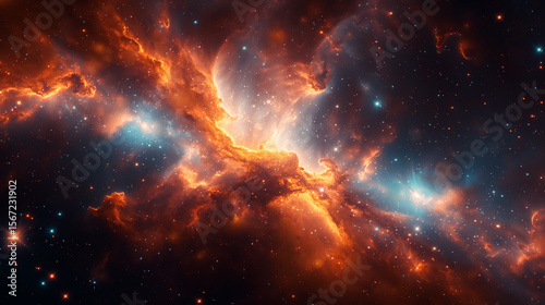 © MAP, Naklejka premium Nebula Clouds Expanding Across Starry Galaxy with Bright Light in Deep Space for Sci-Fi Design Use