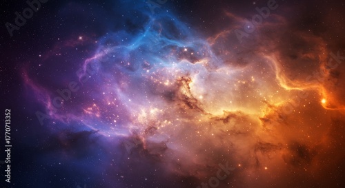 Fototapeta premium Nebula of blues purples oranges swirling cosmic dust many stars