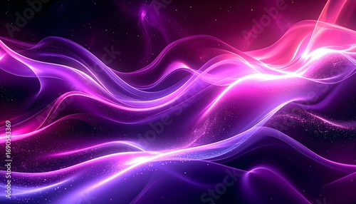 © Stanislava, Naklejka premium Nebula Purple and Pink Waves Abstract Cosmic Background