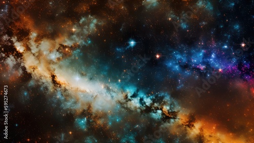 Naklejka premium Nebula space abstract illustration, stars and universe background, Generative AI