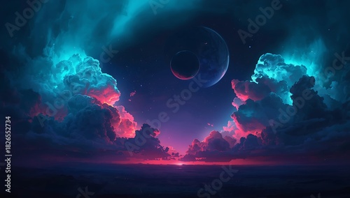 © Mohshina, Fototapeta premium Nebula space wallpaper background with planets and colorful clouds hd aesthetic art