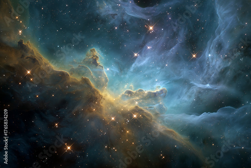 © Julia, Fototapeta premium Nebulae in Deep Space – Glowing Cosmic Cradle of Light with Interstellar Dust and Stars