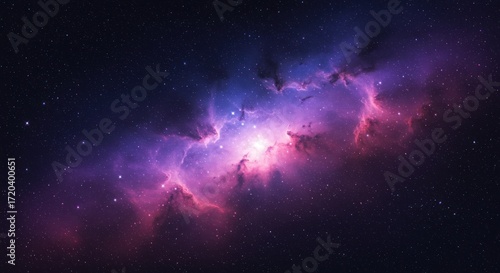 © Art, Fototapeta premium Nebulae in space with purple pink and blue colors against a dark background.