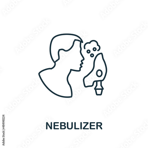 © Mariia, Obraz premium Nebulizer icon. Line element from medical equipment collection. Linear Nebulizer icon sign for web design, infographics and more.