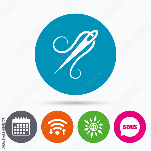 © blankstock, Obraz premium Needle with thread icon. Tailor sign.