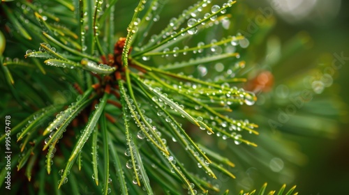 © CryptoCanvas, Fototapeta premium Needles of pine and dew