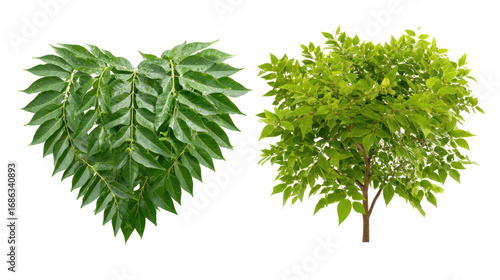 Fototapeta premium Neem Tree and Peepal Tree Side by Side with Heart-Shaped Leaves on Transparent Background