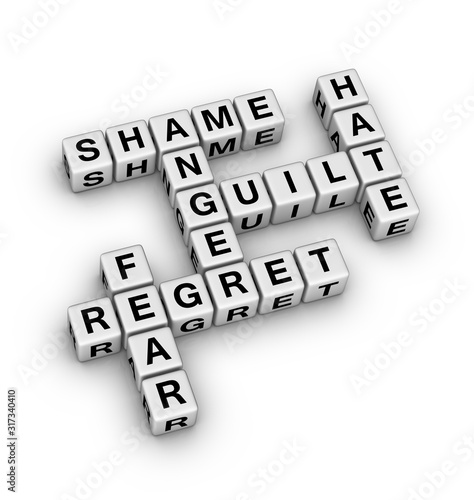 © almagami, Obraz premium Negative Emotion Word Cloud. 3D cubes crossword puzzle on white background.