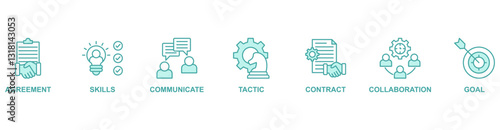 © AGE, Fototapeta premium Negotiation banner web icon vector illustration concept with icon of agreement, skills, communicate, tactic, contract, collaboration, goal