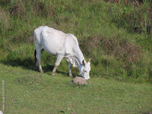 © Anderson Matos, Fototapeta premium Nelore cow eating grass. Cattle Grazing.