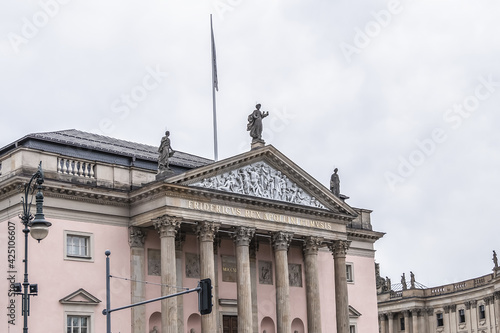 Fototapeta premium Neo-classical building of Berlin State Opera (from 1743) in Unter den Linden street. Berlin, Germany.