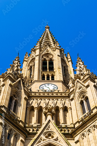 © Ldgfr Photos, Fototapeta premium Neo-Gothic Bell Tower of the Good Shepherd Cathedral in Donostia-San Sebastián