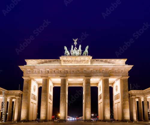 Obraz premium Neoclassical Brandenburg Gate (Brandenburger Tor) at night Pariser Platz...