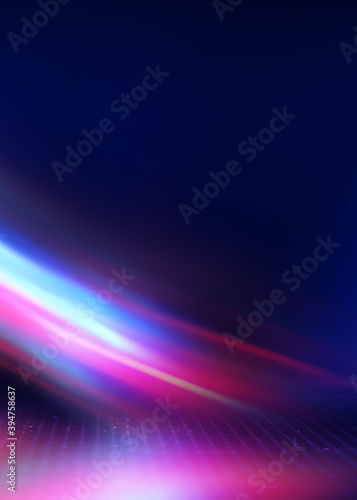 © Laura Сrazy, Fototapeta premium Neon abstract light rays on a dark background. Light effect, laser show, surface reflection. Ultraviolet radiation, nightclub. 3d illustration
