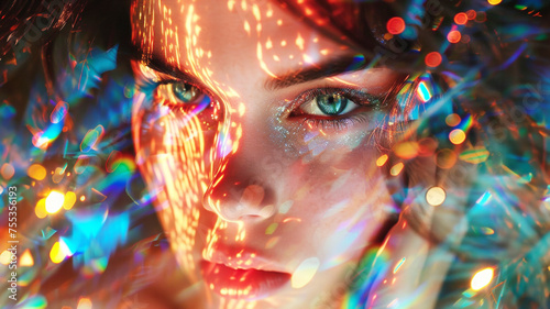 © bit24, Fototapeta premium Neon aesthetic portrait of woman. Magic universe.