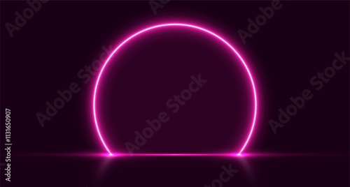 Obraz premium Neon arch, pink glowing portal, futuristic circle stage, magic gate background. Vector illustration.