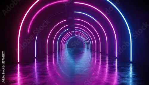 © fakii, Naklejka premium Neon arch tunnel, vibrant colors