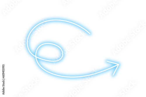 Obraz premium Neon arrow shape png. Glowing blue arrow on transparent background.