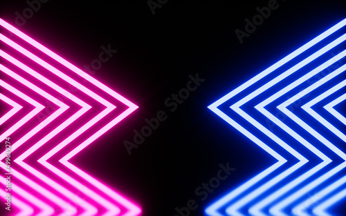 Obraz premium Neon arrows with black background, 3d rendering.