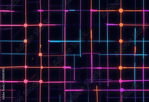 Obraz premium Neon Art Grid Lines - AI-Generated - Wallpaper Neon Dreamscape: Futuristic...