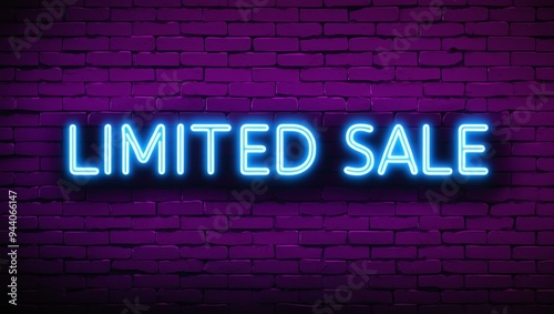 © Alteisen Riese, Fototapeta premium neon backlit style of the word limited sale on a brick wall background