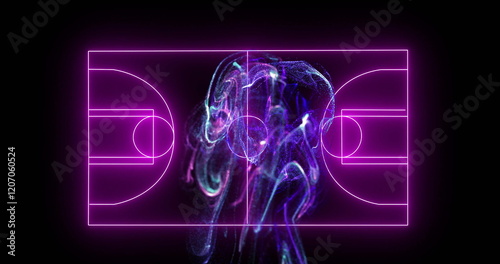 Fototapeta premium Neon basketball court lines with swirling abstract image in center