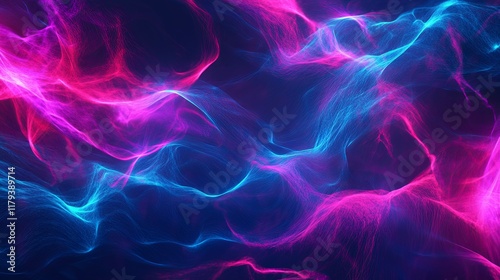 Obraz premium Neon Blue and Pink Energy Waves: Abstract Digital Art