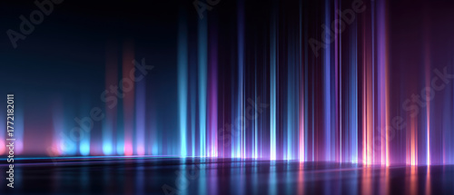© Petr, Fototapeta premium Neon blue and purple glowing stripes in abstract futuristic background