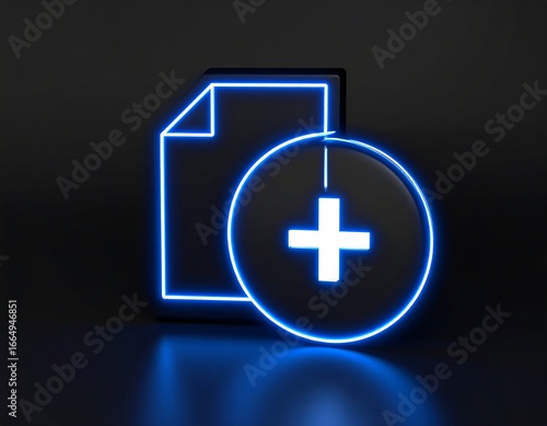 © Fiyu, Obraz premium Neon blue file and plus sign