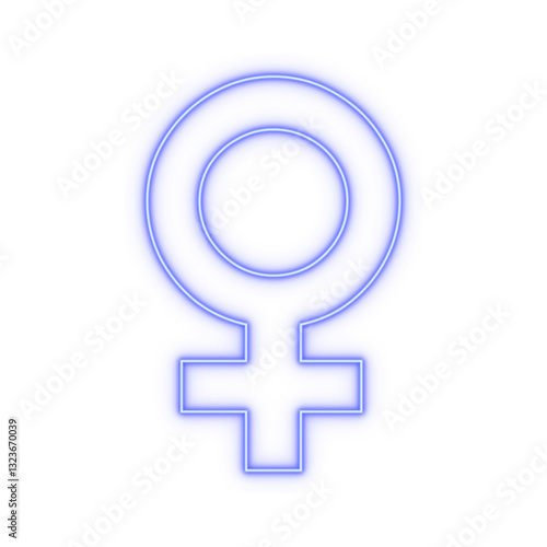 Fototapeta premium Neon blue outline ♀ female gender symbol on transparent background