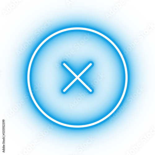 © ARTFX Design, Fototapeta premium Neon blue remove button icon, glowing x icon on transparent background