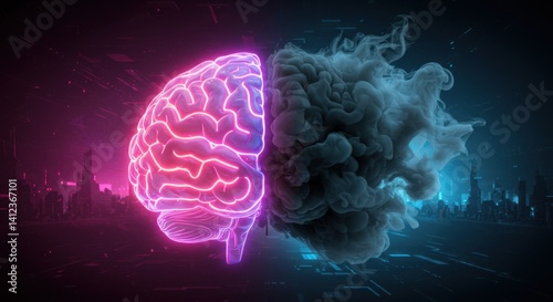 © Cloudy, Obraz premium Neon Brain Halves Composition