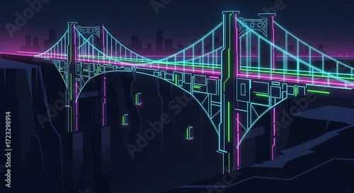 Fototapeta premium Neon Bridge at Night.