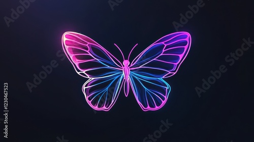 Fototapeta premium Neon butterfly wings dark background, digital art
