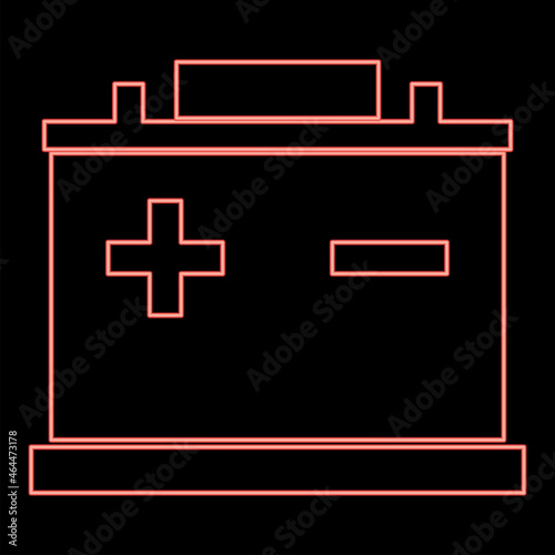 © Serhii, Obraz premium Neon car battery red color vector illustration flat style image