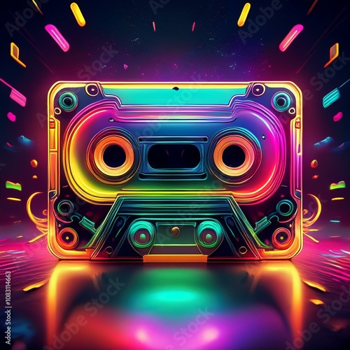 Obraz premium Neon cassette. 90s nostalgia. Listening to music