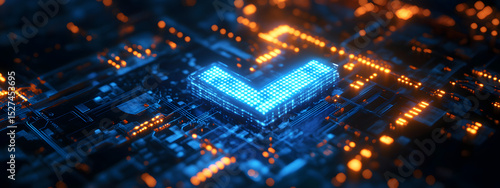 Obraz premium Neon Checkmark in Digital Core