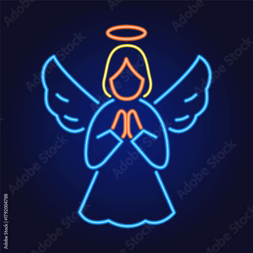 © Tetiana, Obraz premium Neon Christmas angel icon vector illustration