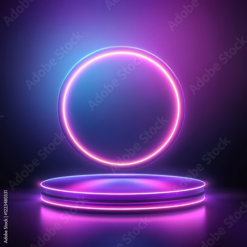 Obraz premium Neon Circle and Glowing Platform: Abstract Background for Product Display.