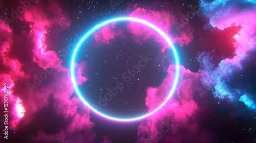 Obraz premium Neon circle framed by swirling pink & blue nebula