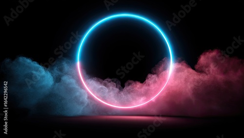 Obraz premium Neon circle in a smoky void