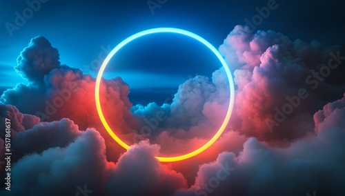 Obraz premium Neon Circle in Colorful Clouds at Night