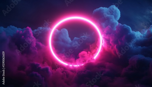 © SABNOR, Fototapeta premium Neon circle in the dark with smoke. 3D rendering.