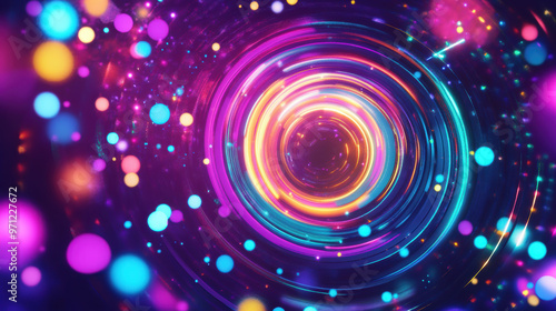 © warunthorn, Obraz premium Neon Circle Lights.