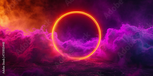 Obraz premium neon circle of light and smoke or clouds