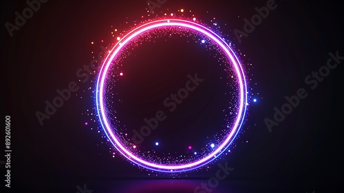 Fototapeta premium Neon circle with dots light effect on black background