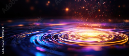 © NFTNexus, Obraz premium Neon Circles and Light Waves in a Black Digital Environment Abstract Technology Concept for Processing Interface and Communication