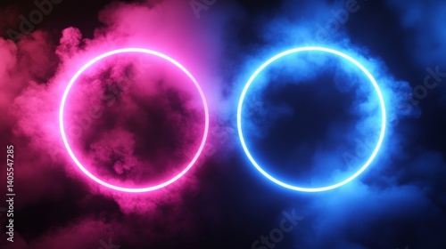 © Pixel Sculptor, Fototapeta premium Neon circles in smoky background